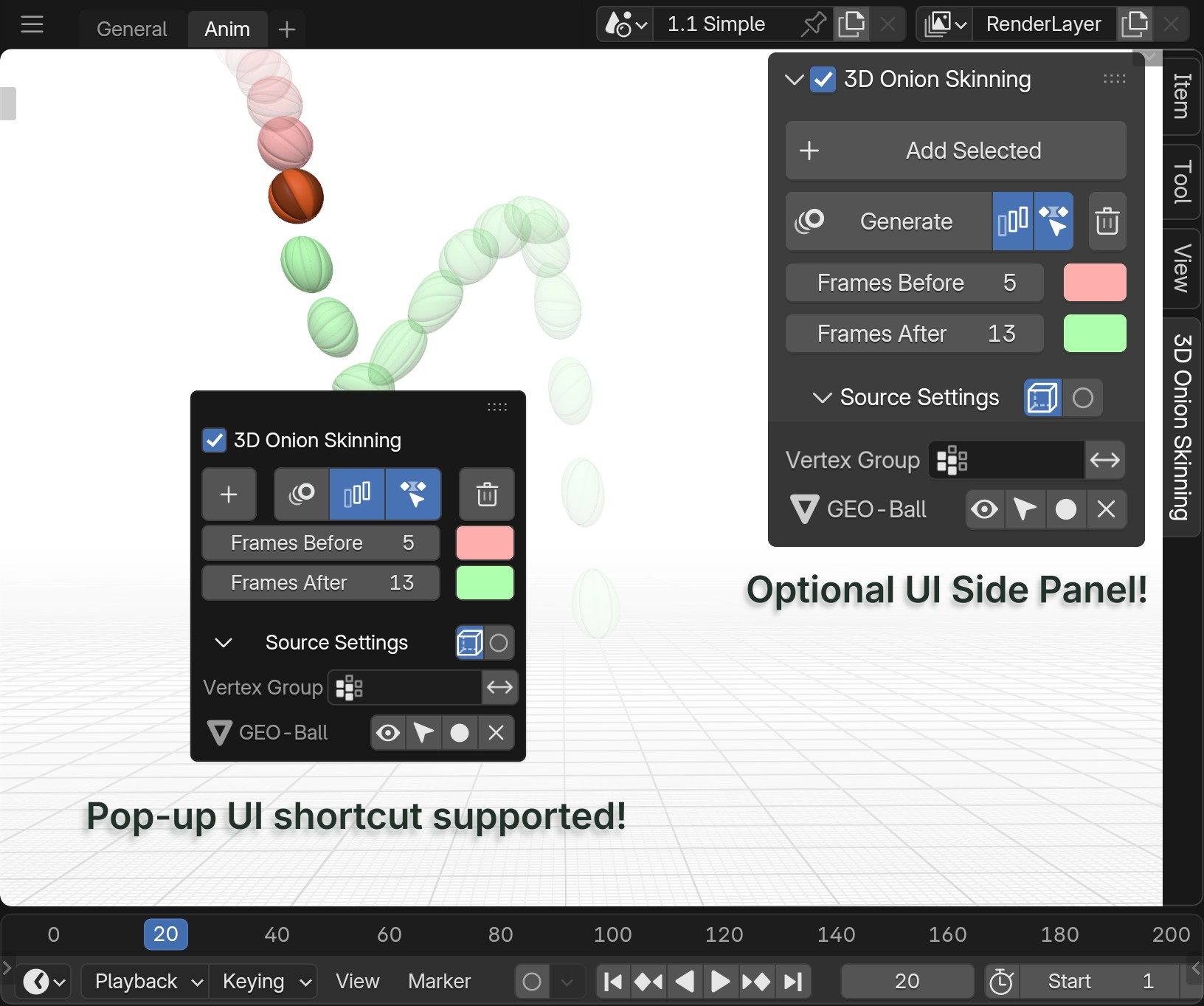 - AnimExtras: A free add-on good for entry-level use. It supports mesh ghosting plus Grease Pencil layers, customizable colors and opacity. Unlike 3D Onion Skinning, it may lack some advanced features for complex scenes but is a valuable free option.