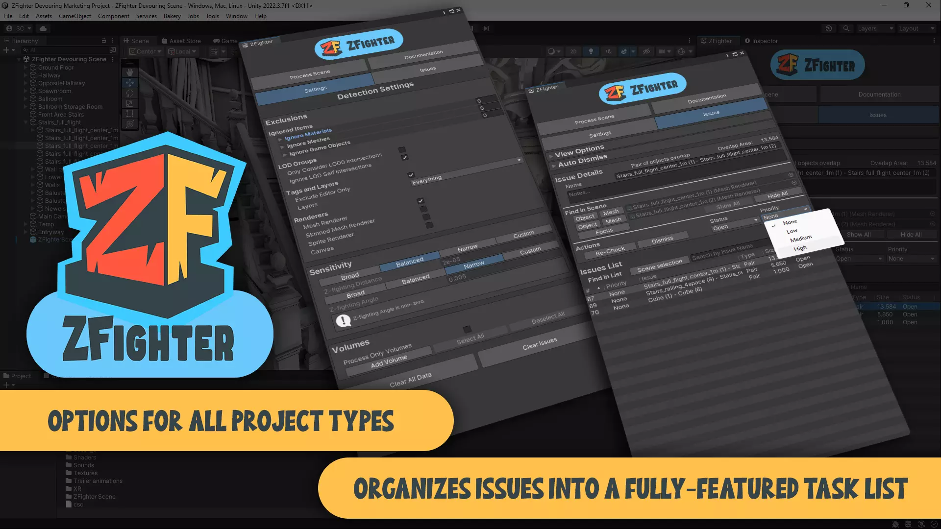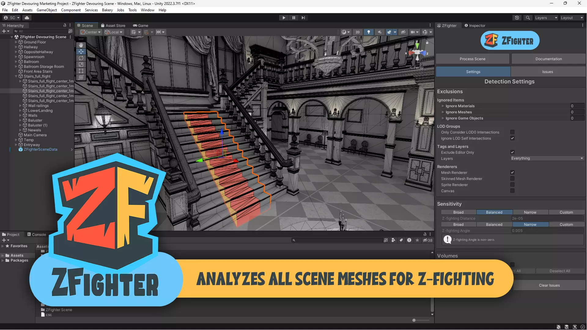 StudioCyFi, is a tool designed to help you find and manage potential z-fighting in your Unity scenes by analyzing meshes and highlighting areas where overlapping surfaces may occur.