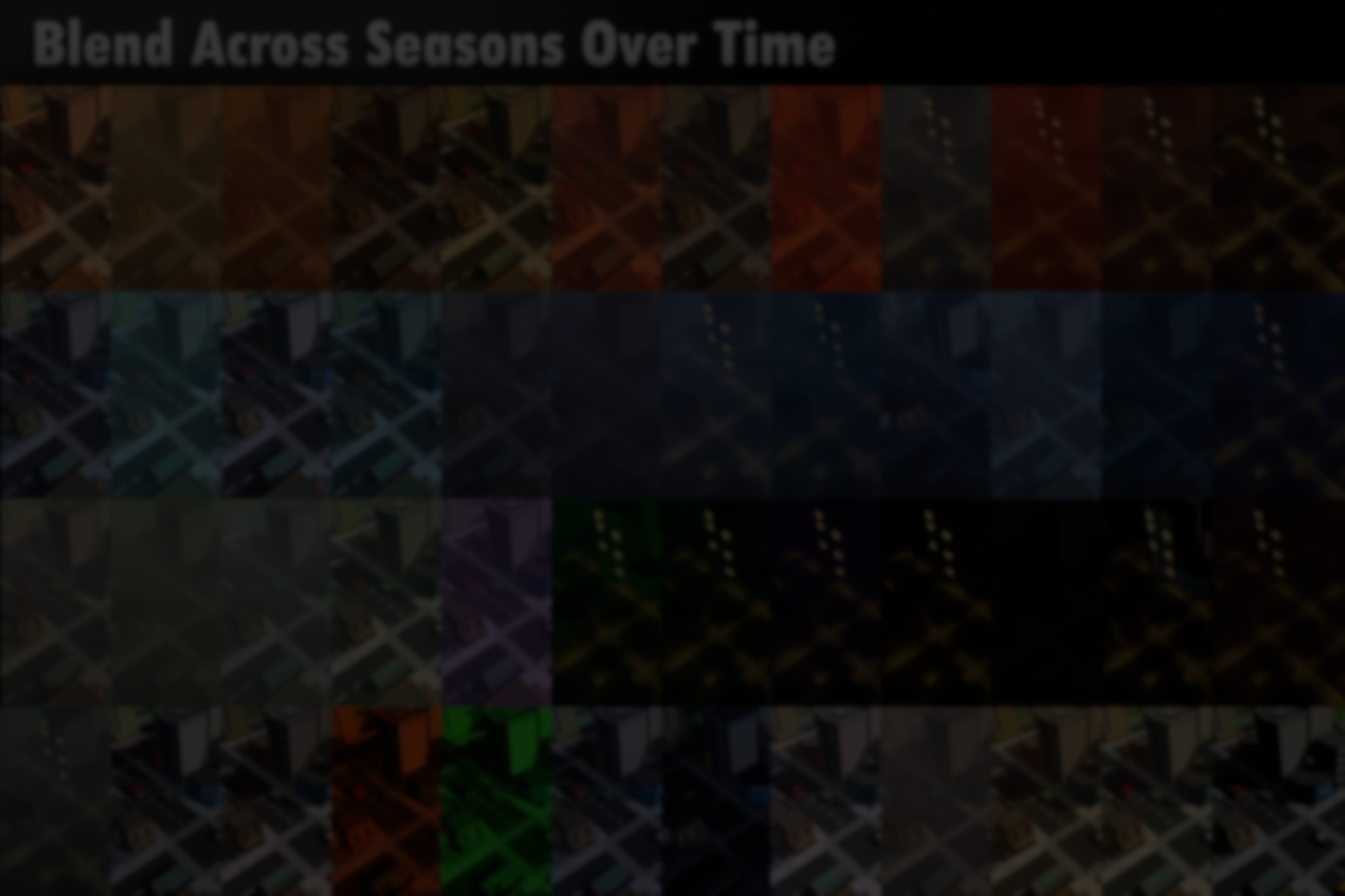 Seasonal progression is treated as a first-class concept. Spring, summer, autumn, and winter profiles can be defined independently, then blended over time without abrupt changes. Developers can also define specific lighting windows, such as dawn, midday, and dusk, to fine-tune moments like sunrise or golden hour.