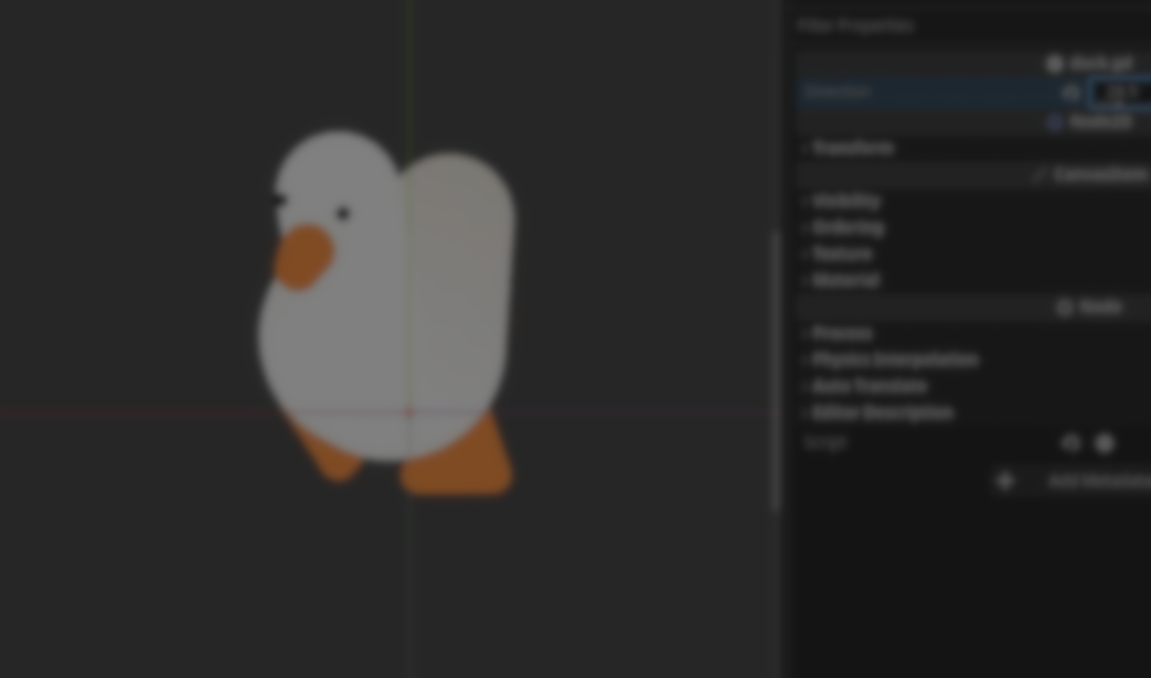 Once the system works, @heytibo applies it to a simple character built from separate sprite parts; in his blog, he uses a duck as an example.
