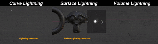 Each generator is available both as a modifier and as a preconfigured object. This makes it possible to either apply the effect to existing meshes or start from a ready-made lightning object and adapt it to the scene.