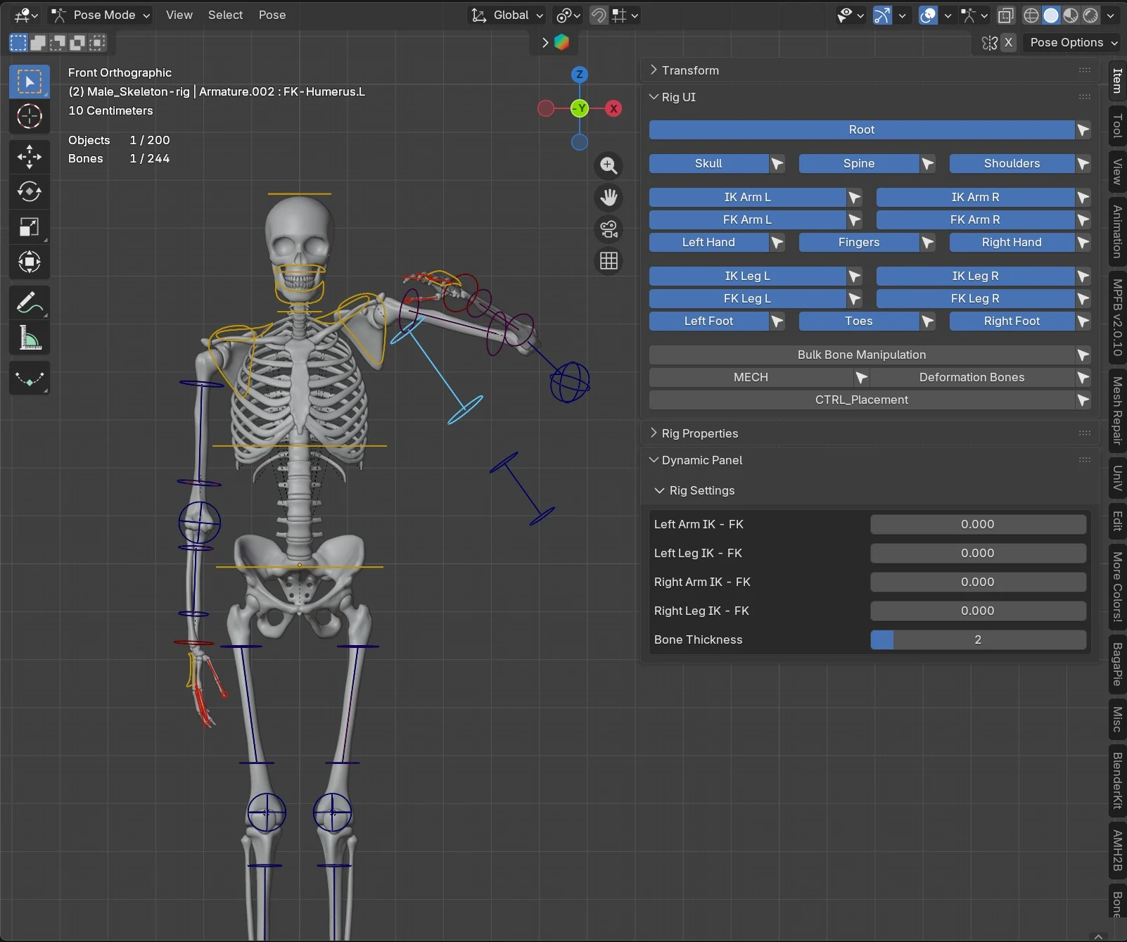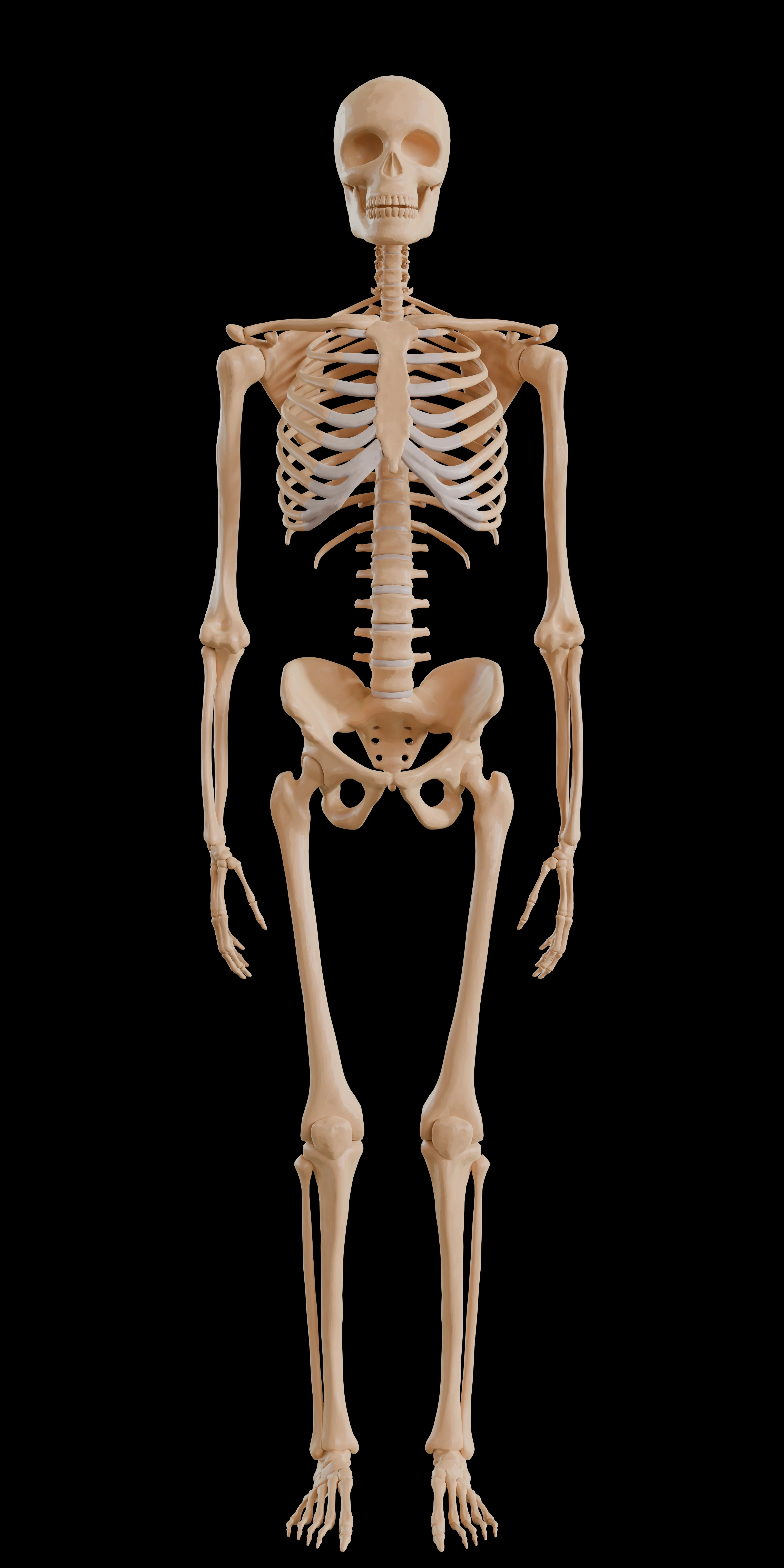 fully rigged male skeleton in Blender based on how real bones move, with every bone separated, named, and set up to move like a real skeleton.