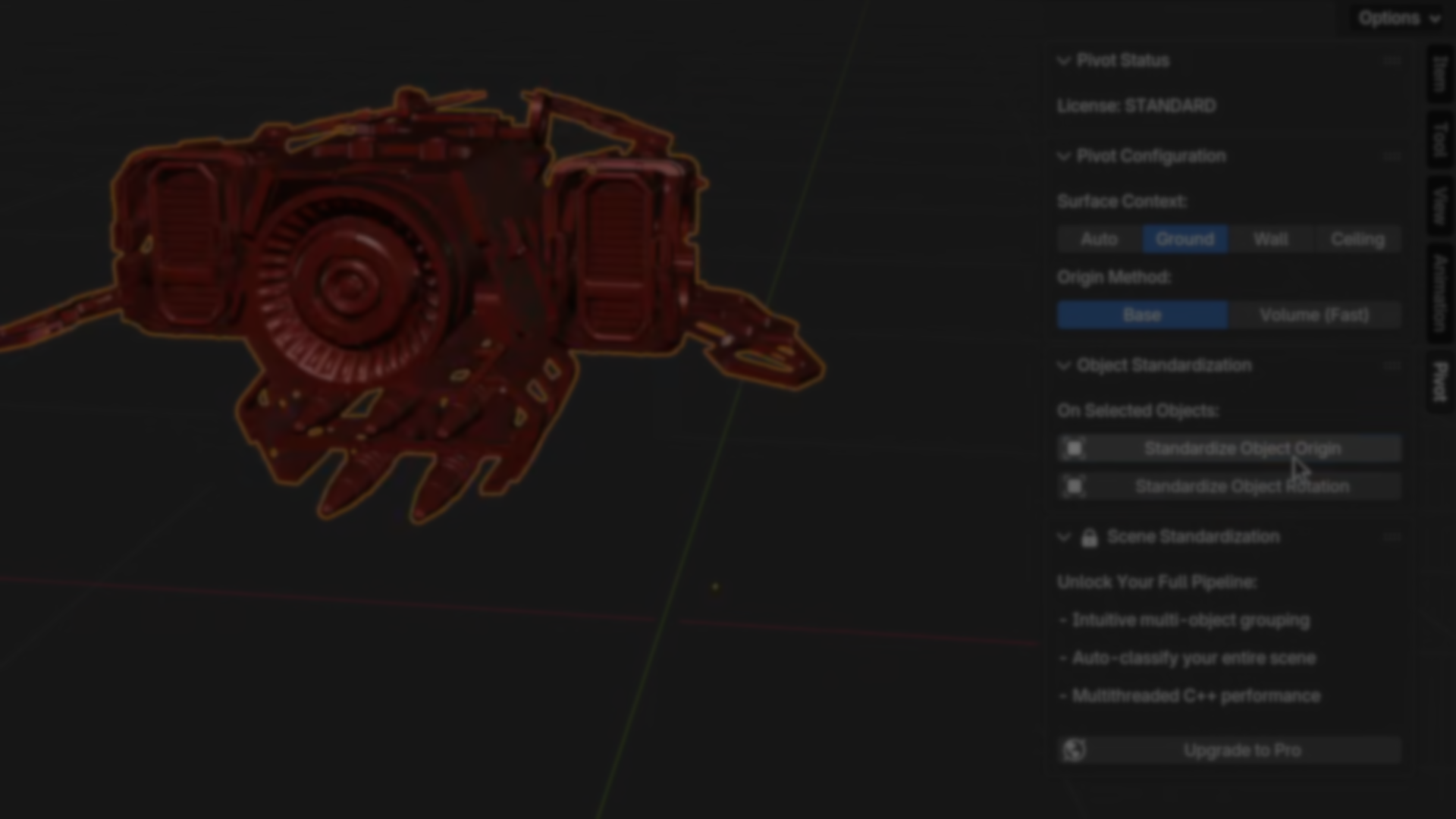 Pivot handles single-object cleanup cleanly in its free version, but Pivot Pro extends that same logic to multi-object assets, treating entire hierarchies as a single unit instead of forcing you to fix each piece individually.