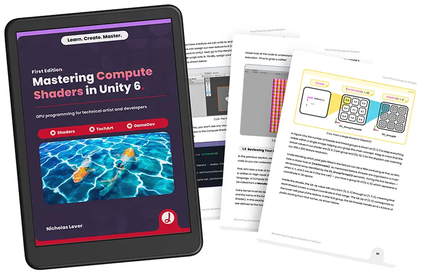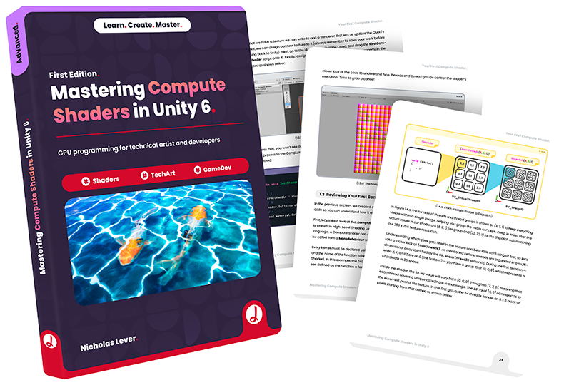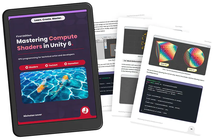Mastering Compute Shaders is a hands-on, visually oriented guide to GPU programming in Unity. Designed for artists and developers, it demystifies the world of Compute Shaders, showing how to use the GPU for far more than rendering, from particle effects and mesh deformation to physics simulations and real-time post-processing.