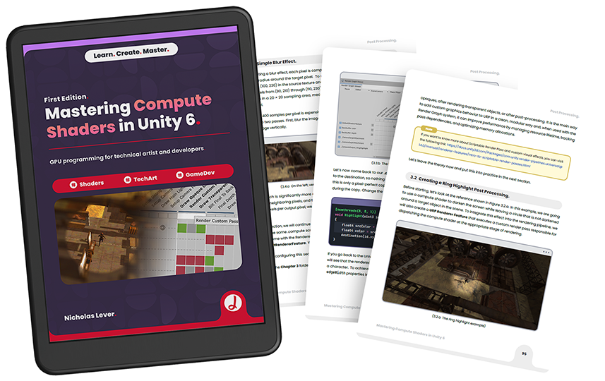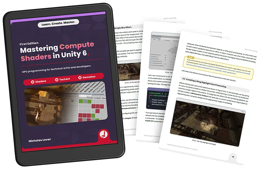 Mastering Compute Shaders is a hands-on, visually oriented guide to GPU programming in Unity. Designed for artists and developers, it demystifies the world of Compute Shaders, showing how to use the GPU for far more than rendering, from particle effects and mesh deformation to physics simulations and real-time post-processing.