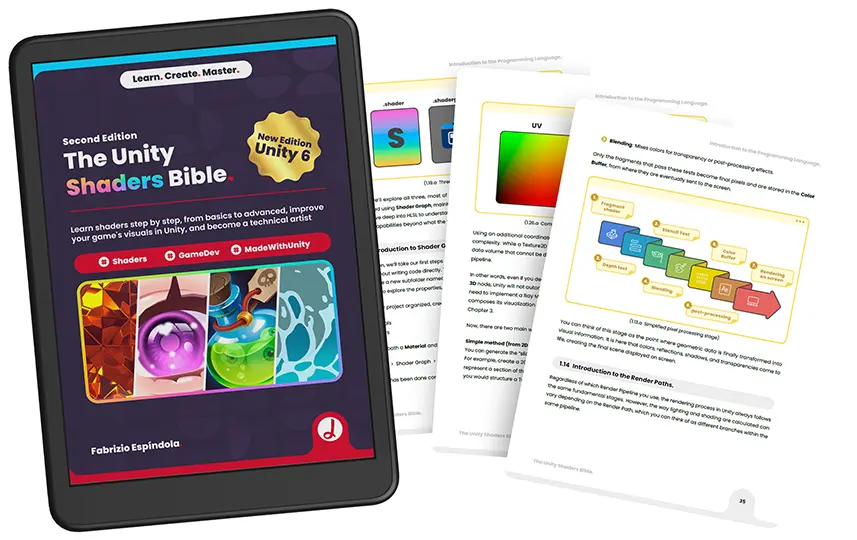 Designed for both aspiring and experienced technical artists, the second edition of The Unity Shaders Bible is a comprehensive ~400-page guide that takes you from the foundations of shader programming — including vertex and fragment shaders — all the way to advanced techniques like ray marching and compute shaders, all within the Unity engine.
