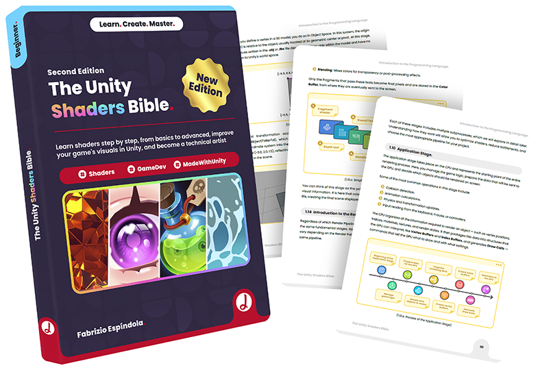 Designed for both aspiring and experienced technical artists, the second edition of The Unity Shaders Bible is a comprehensive ~400-page guide that takes you from the foundations of shader programming — including vertex and fragment shaders — all the way to advanced techniques like ray marching and compute shaders, all within the Unity engine.